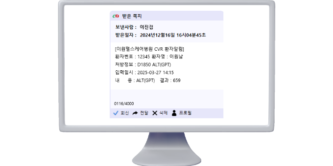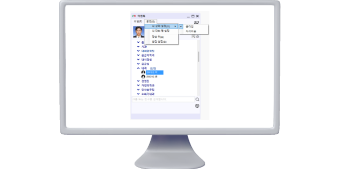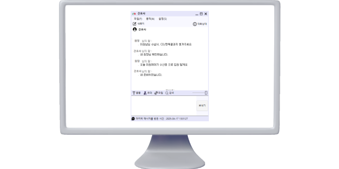 EONE.IT 솔루션과 연동하여 원내 구성원들간의 실시간 메시지, 대화, 파일 첨부 기능을 통해 효율적인 소통을 지원합니다.